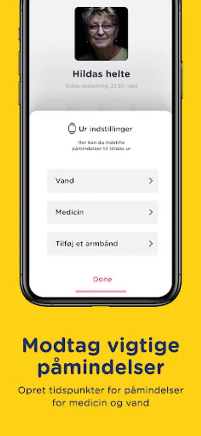 Pill reminders and water hydration reminders can easily be configured in the app by a Guardian, or the person being looked after.