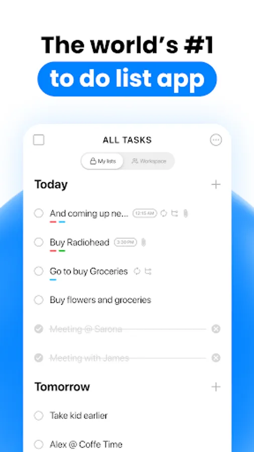 • WORK TOGETHER - Share your to do list and assign tasks with your friends, family & colleagues from your task list to collaborate and get more done.