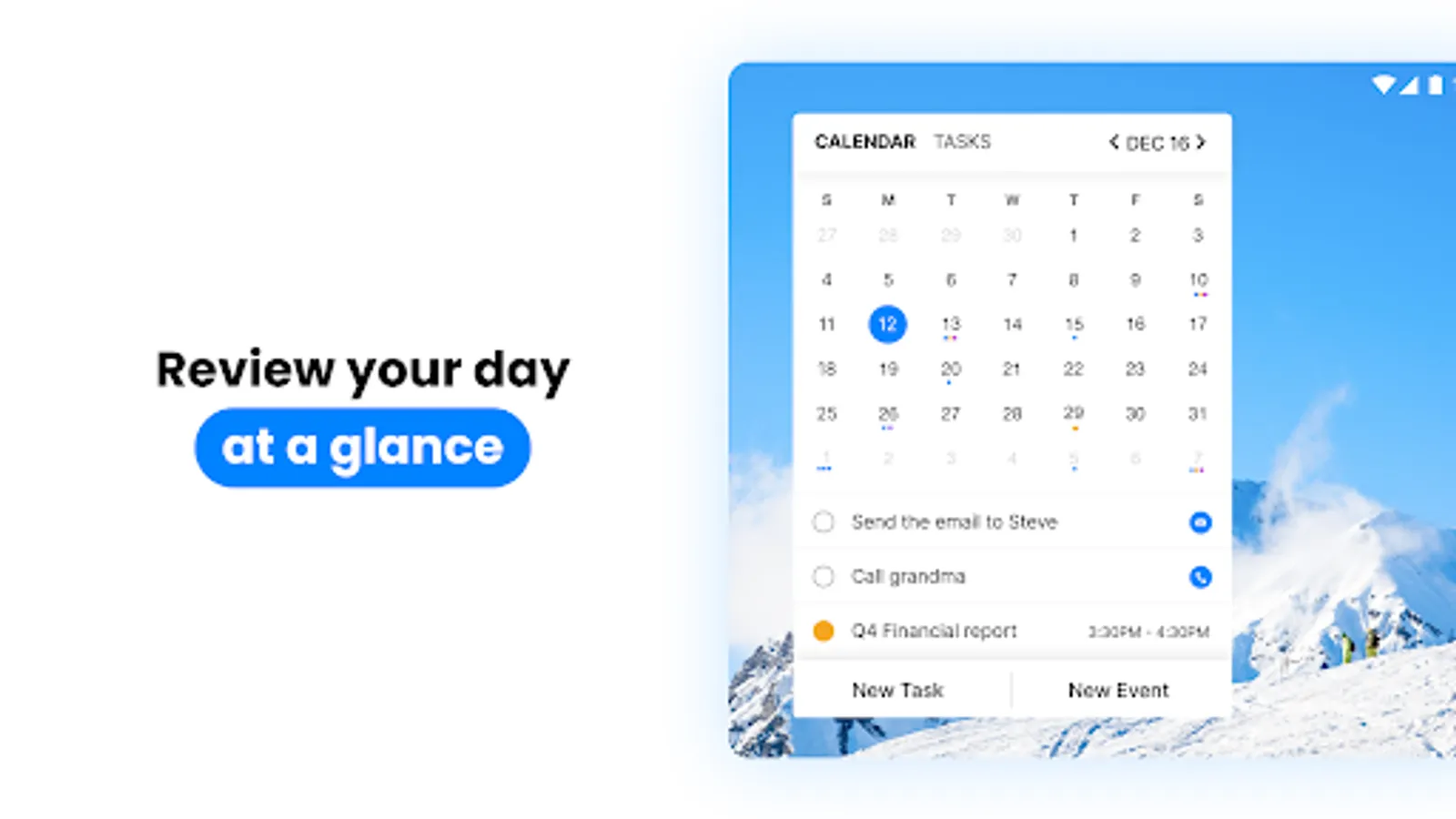 • ADVANCED CALENDAR & DAILY PLANNER - Keep your to-do list and calendar events always at hand with our calendar widget. Any.do to-do list & planner support daily calendar view, 3-day Calendar view, Weekly calendar view & agenda view, with built-in reminders. Review and organize your calendar events and to do list side by side.