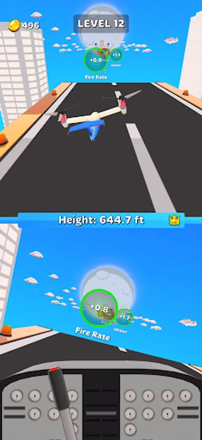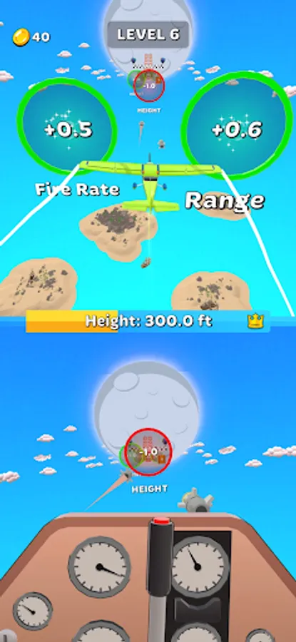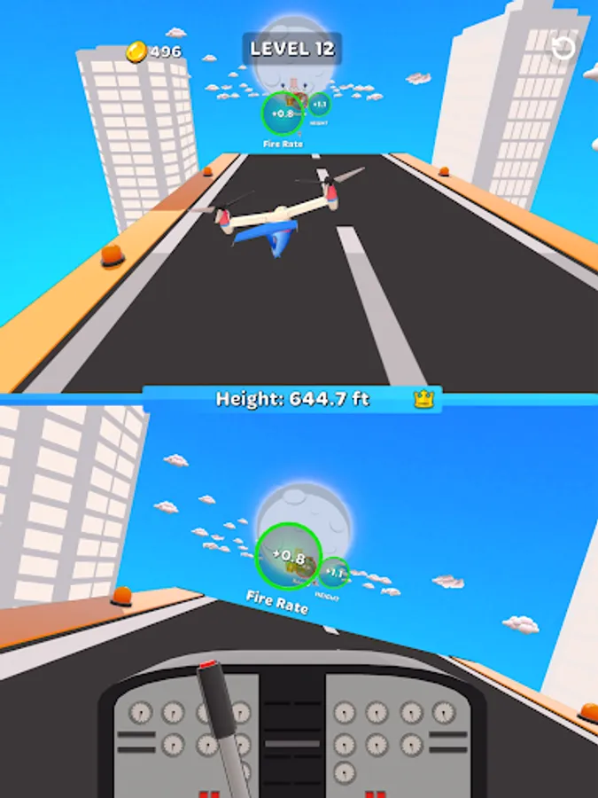 - Shoot upgrades with your plane and upgrade your height, fire rate & range.