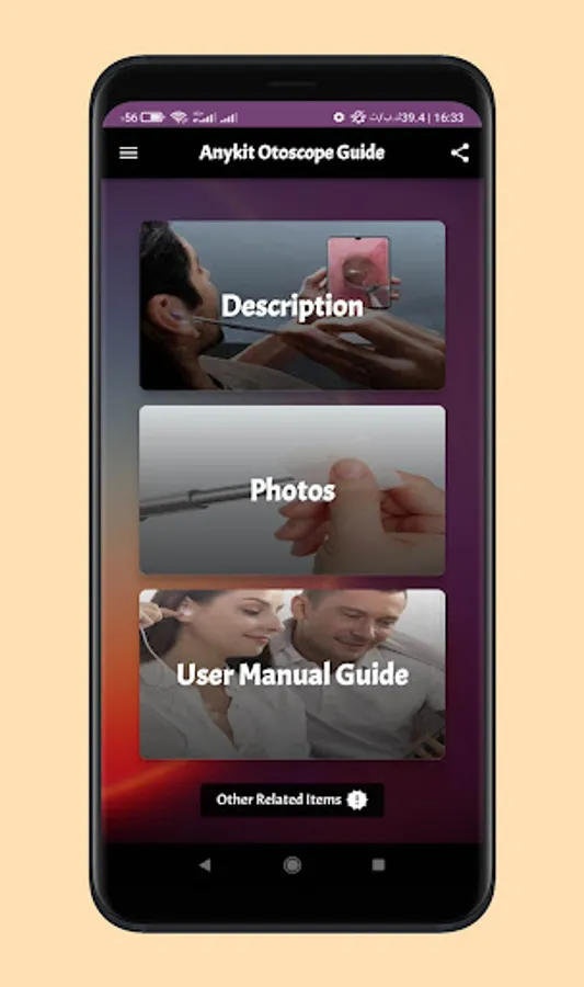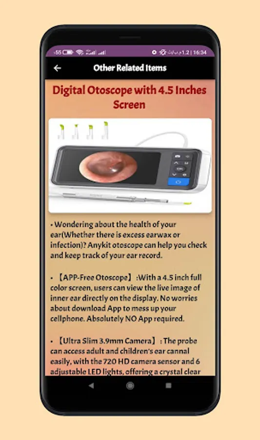 In anykit otoscope guide app we supported many sections of content that will let you now more information about anykit otoscope guide