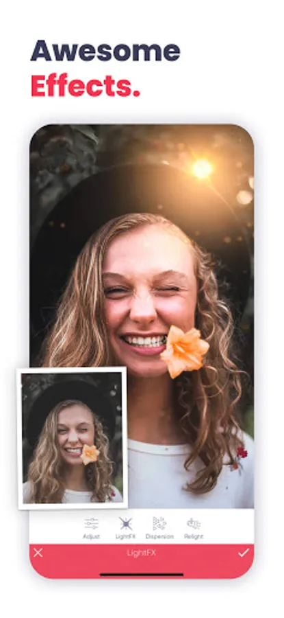 You'll find almost all necessary features for photo editing in the app.