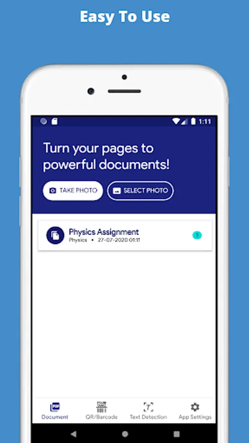 AnyScan is a Indian mobile app that allows Android devices to be used as image scanners. It allows users to 'scan' documents by taking a photo with the device's camera and share the scanned JPG image as PDF file. This app is specially designed for School & College students. It is available for free on Google Playstore.