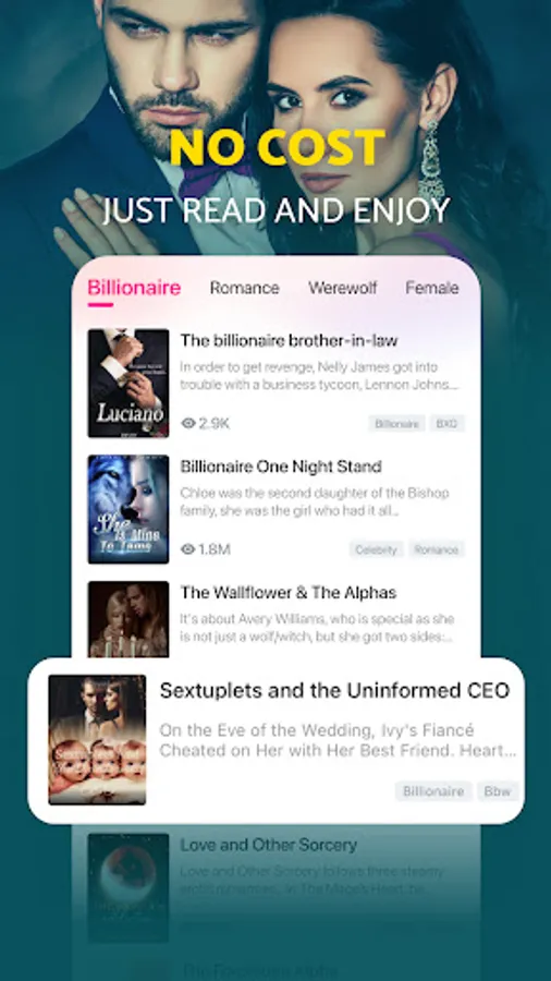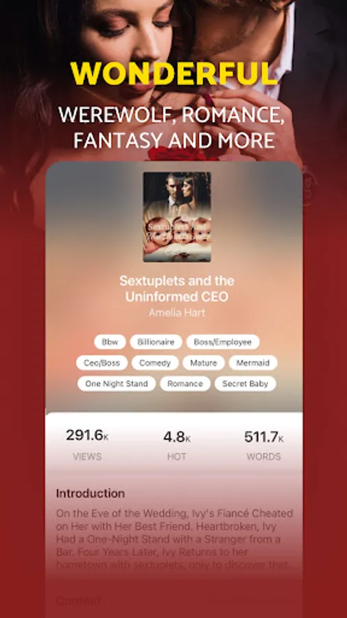 Readopia is a goodnovel land where you can indulge in thousands of bite-sized webnovel of the best-seller: love stories, romance fiction, and fantasy novels about popular werewolf romance, bad-boy stories, attractive vampires series, and forced marriage with billionaire bosses or blood spurting bad marriage revenge stories.