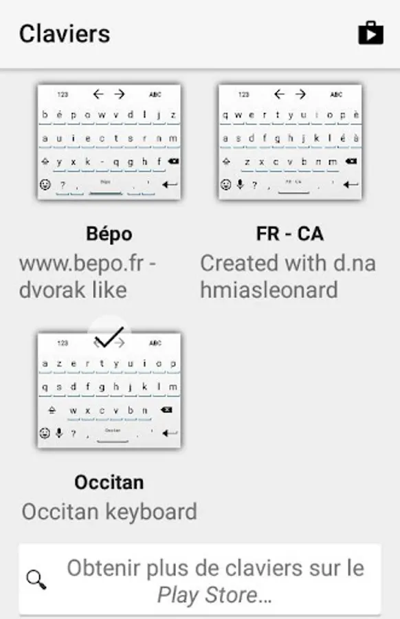 - If the occitan is activated, you'll see a validation symbol (✔) at the top of the keyboard picture. If not, you have to click on it.