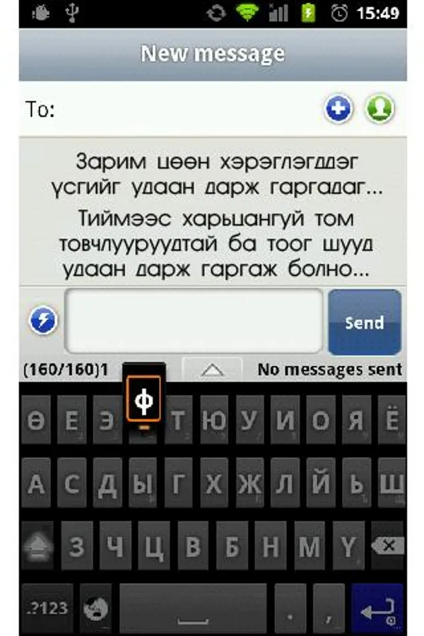 - Жинхэнэ гартай утсан дээр о, у үсгийг хурдан 2 дарахад ө, ү үсэг гарах зэргээр өөр үсгүүд гаргана. Том Ө, Ү зэрэг үсгийг гаргахын тулд "зо", "зу" гэж хурдан дарна. Гар нь олон үсэгтэй компьютерын гар шиг бүрэн үсэгтэй бол QWERTY [бүтэн] гарыг сонгон хэрэглээрэй.