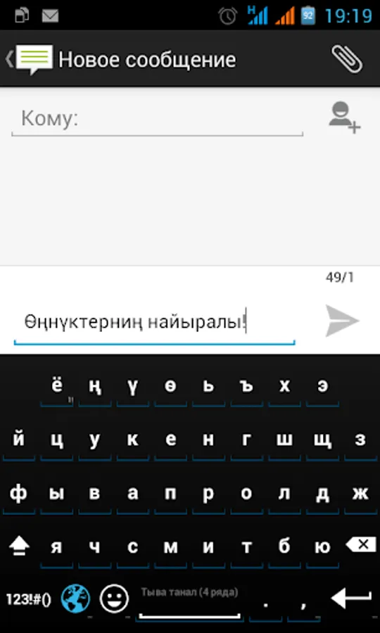 2. Set Tyva Tana go to Settings -> Language & input -> AnySoftKeyboard -> Languages layouts and select Tyva.