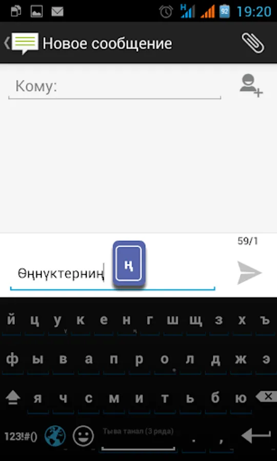 In the layout "Tyva (3 odurug)" additional letters are typed by long pressing the corresponding Russian letter. For example, when you long press on the letter 'o' get with 'Oe'.