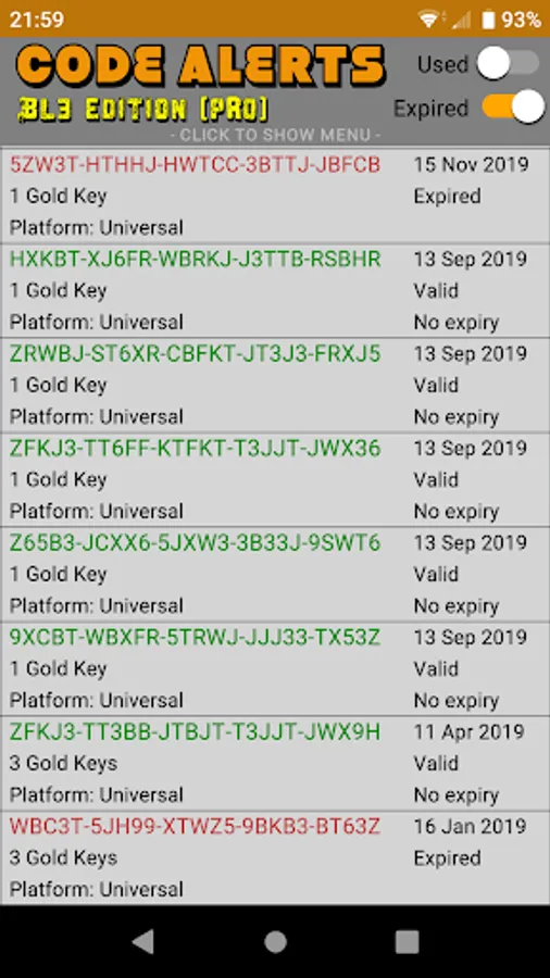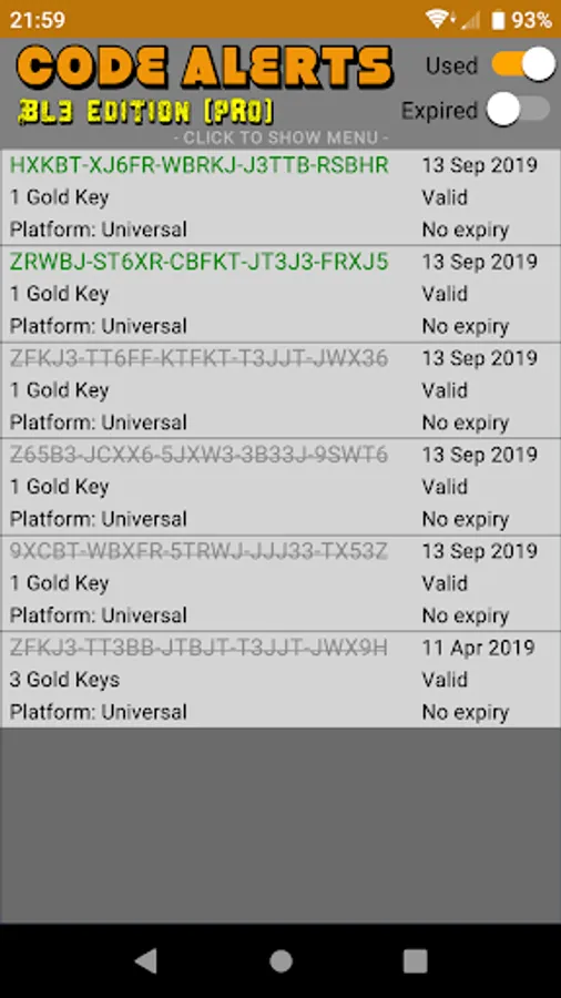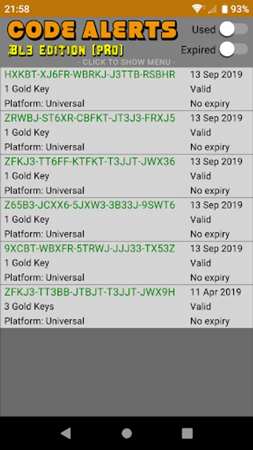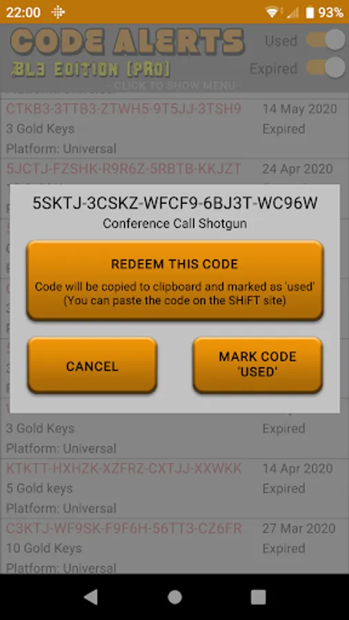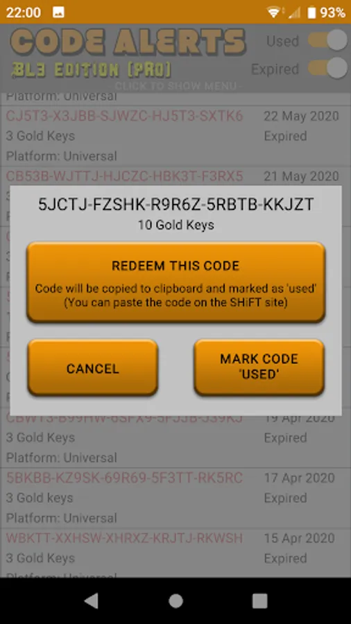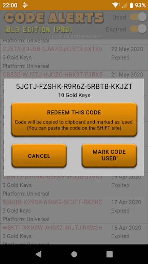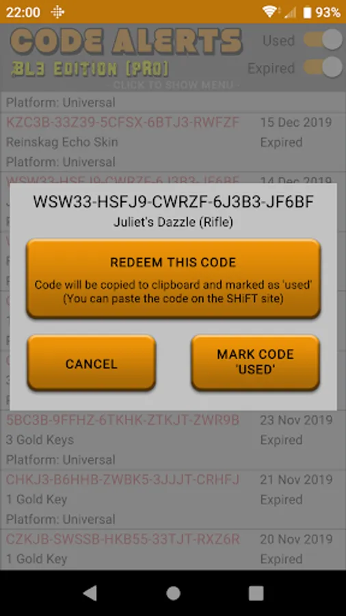- Keep track of all of the Borderlands 3 codes you've redeemed from the app.