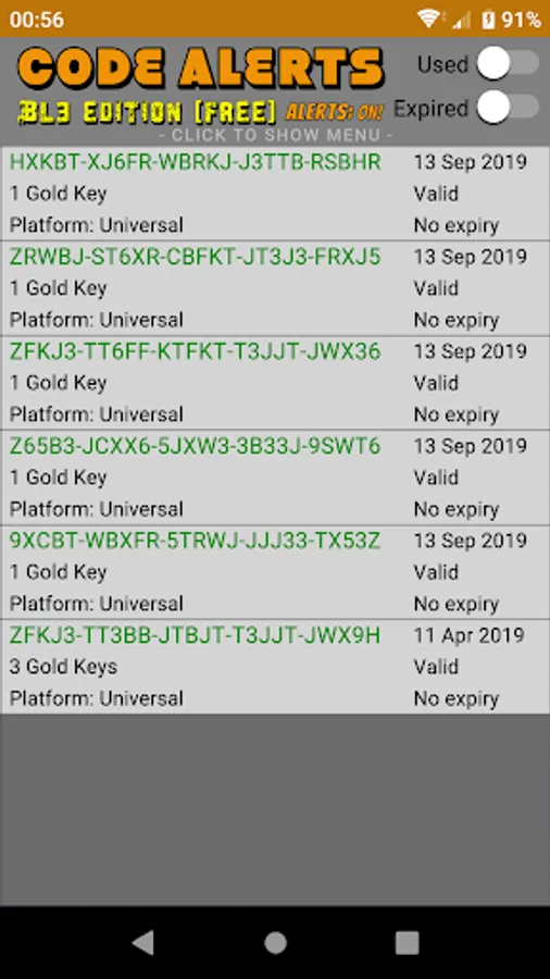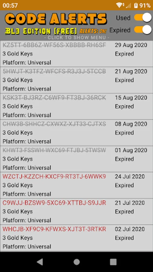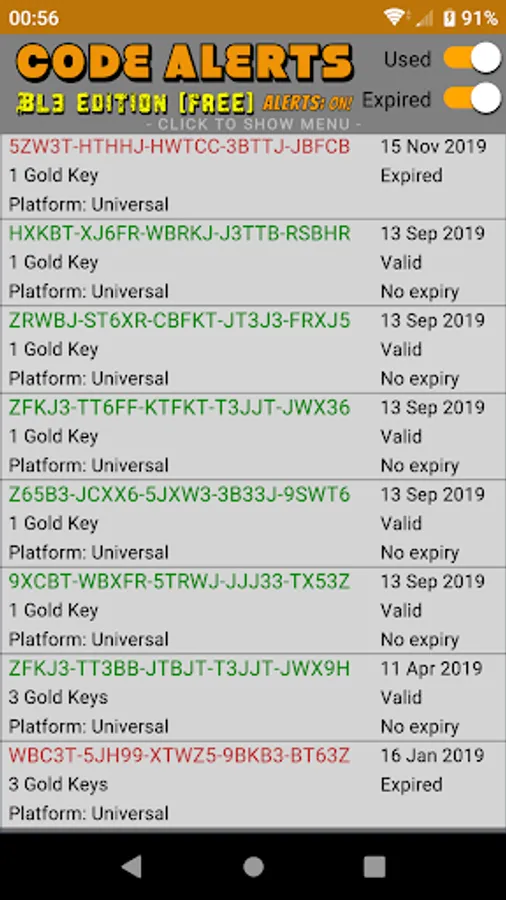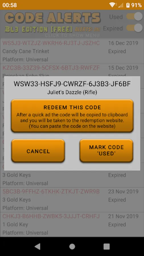 - Keep track of all of the Borderlands 3 codes you've redeemed from the app.