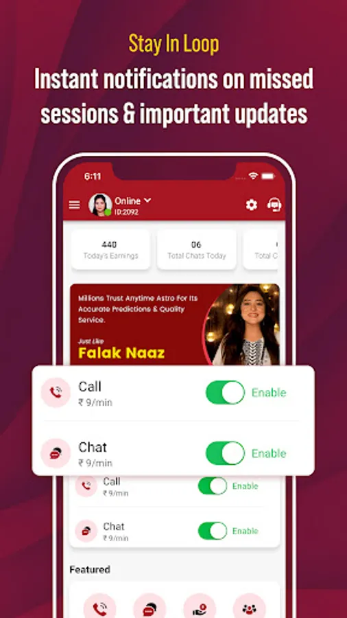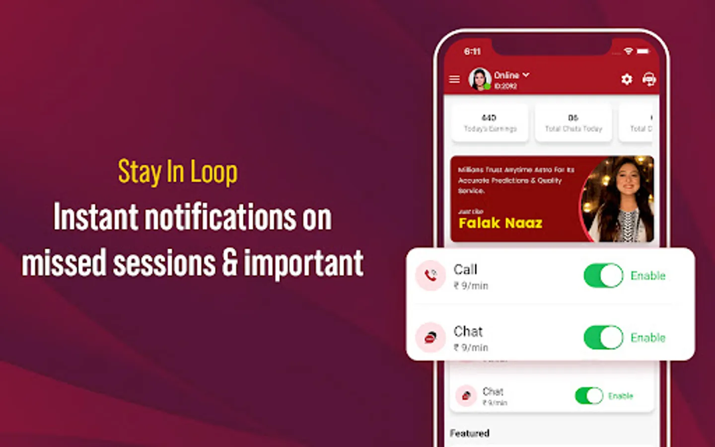 - Never Miss Updates:- Missed appointments? Do not worry the app will notify you of all your missed calls and missed chat sessions. You can view the date and time of missed calls or chats and even “Reach out” to the customers through this section. Review the customer details and also know about their concern. Astrologers can also call them back instantly to stay in the loop.