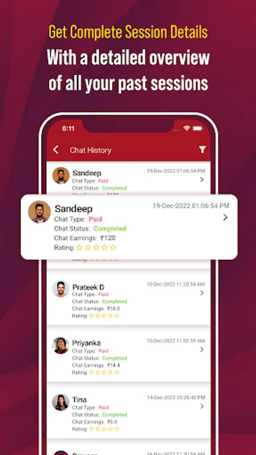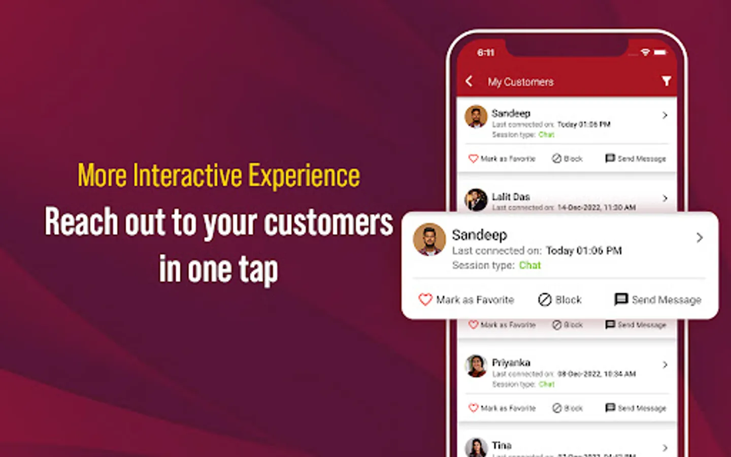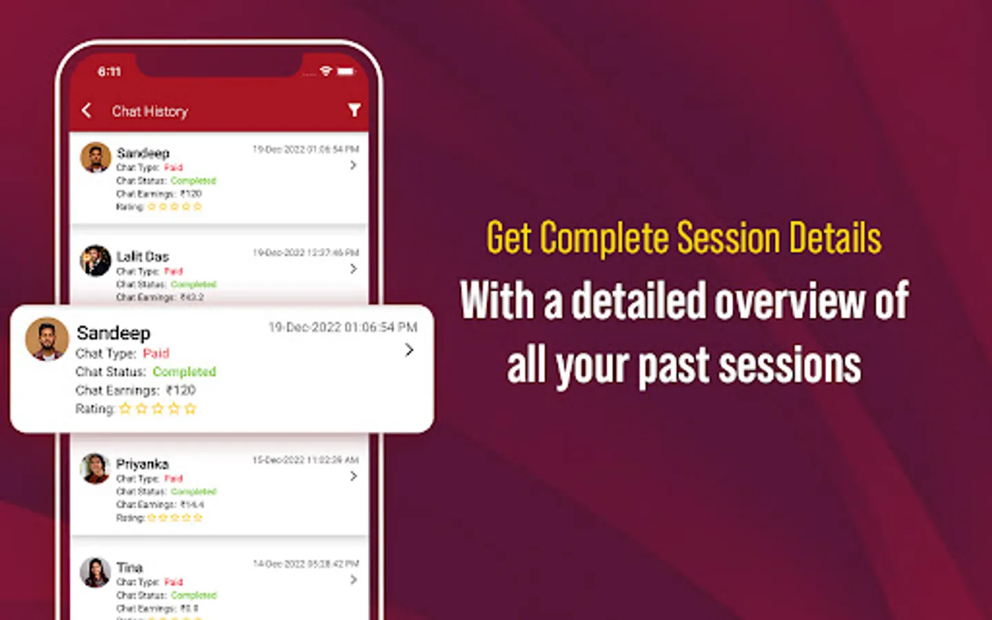 - Clear and Organized Customer Details:- Find the list and details of all your customers and followers in one place. Review your call and chat history, duration of consultations, preferred language, total charge as well as the chat end reason. You can also share feedback with us if you are facing any issues or problems, we will do our best to resolve that as soon as possible.