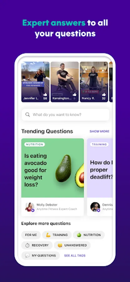 Community — Got a question? Ask questions, follow experts, and create a sense of social atmosphere outside of the four walls of the gym. In Community, you’re not alone, you’re surrounded by people that care and are connected to Anytime Fitness, our expert coaches, trainers, and others, just like you who have questions and want to learn more about the topic of health, fitness, training, nutrition, and recovery.