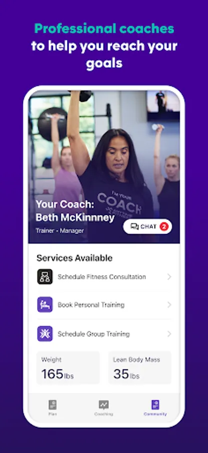 Coaching — Everyone needs a little help sometimes, and the Anytime app helps connect you with professional health coaching services. Our coaches pull in your current health info and learn about your goals and lifestyle information to create an ultra-personalized plan, just for you. The concierge in the Anytime app can also connect you to other services at Anytime Fitness, such as scheduling 1:1 personal training and group training classes, and much, much more!