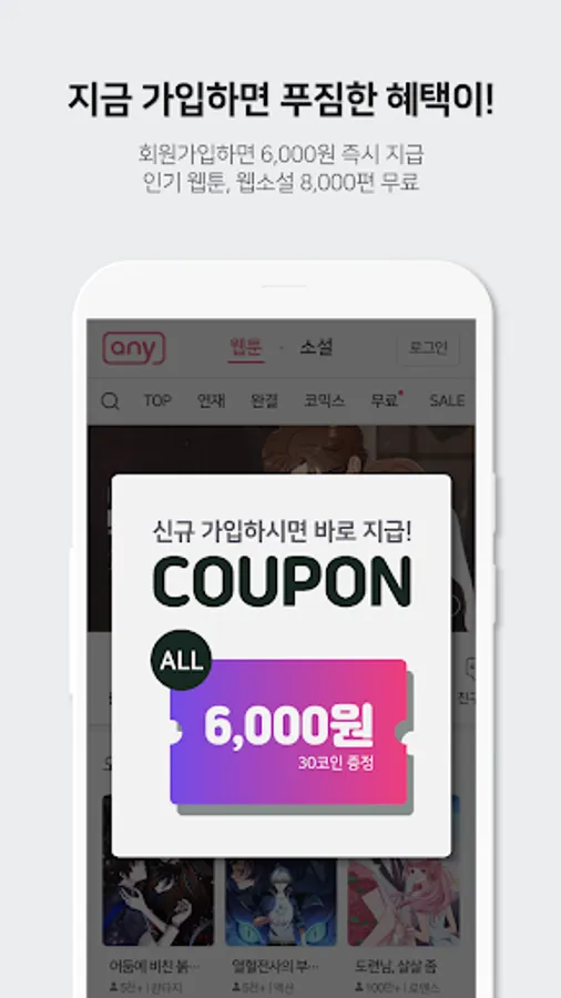 - If you sign up for free now, you will receive 6,000 won immediately.