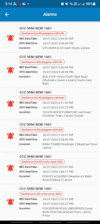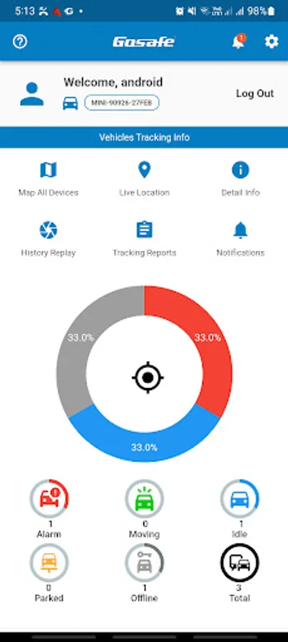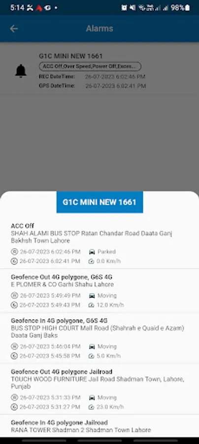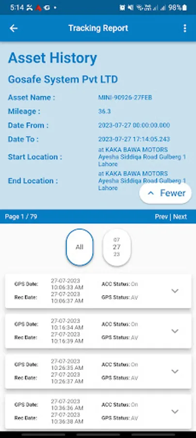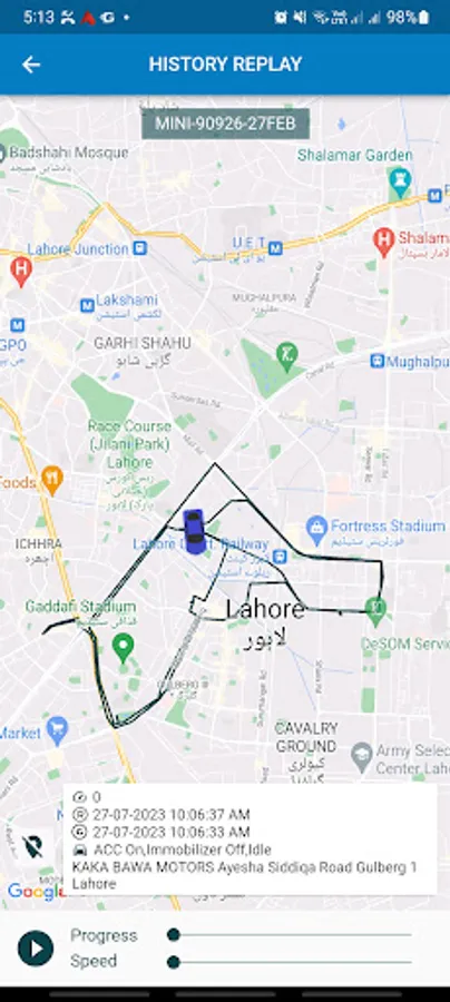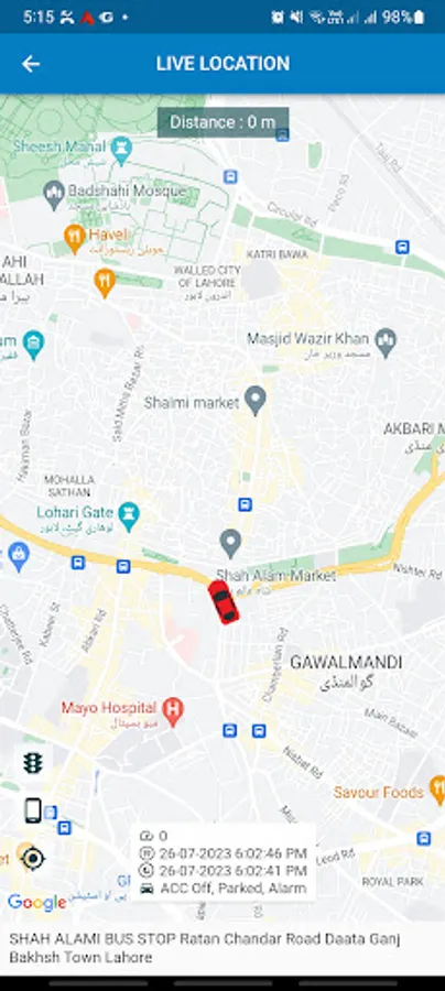 Takes location data via API and pull live location from DB server of selected vehicle , also generates different reports