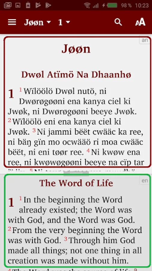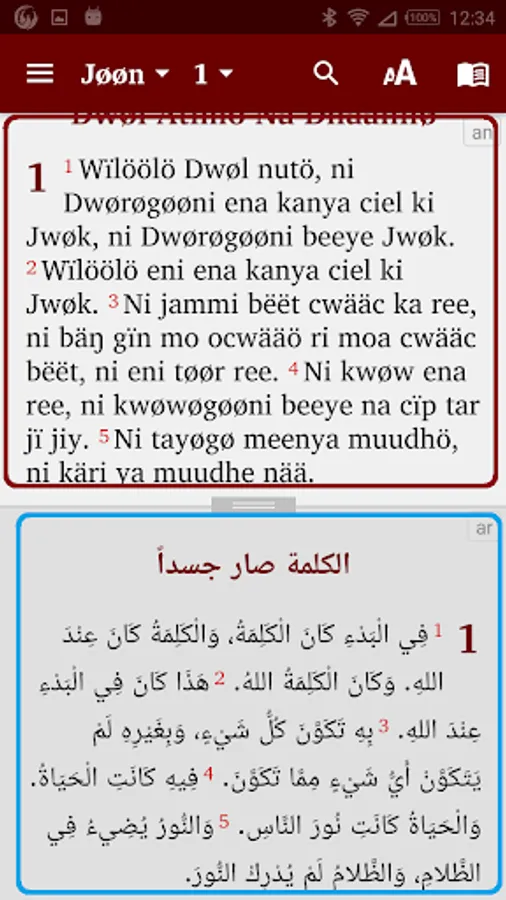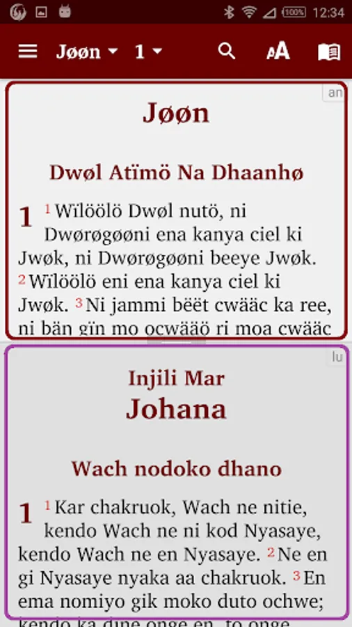 - "verse by verse" to display a verse in Anuak followed by the same verse in English (or/and Arabic, or/and Swahili, or /and Luo)