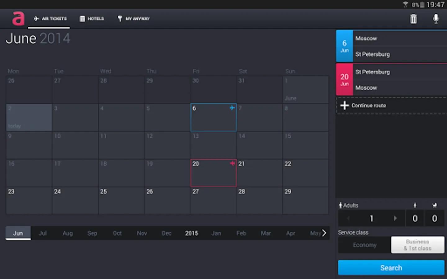 Anywayanyday is an app for travellers looking for cheap flights and hotels.