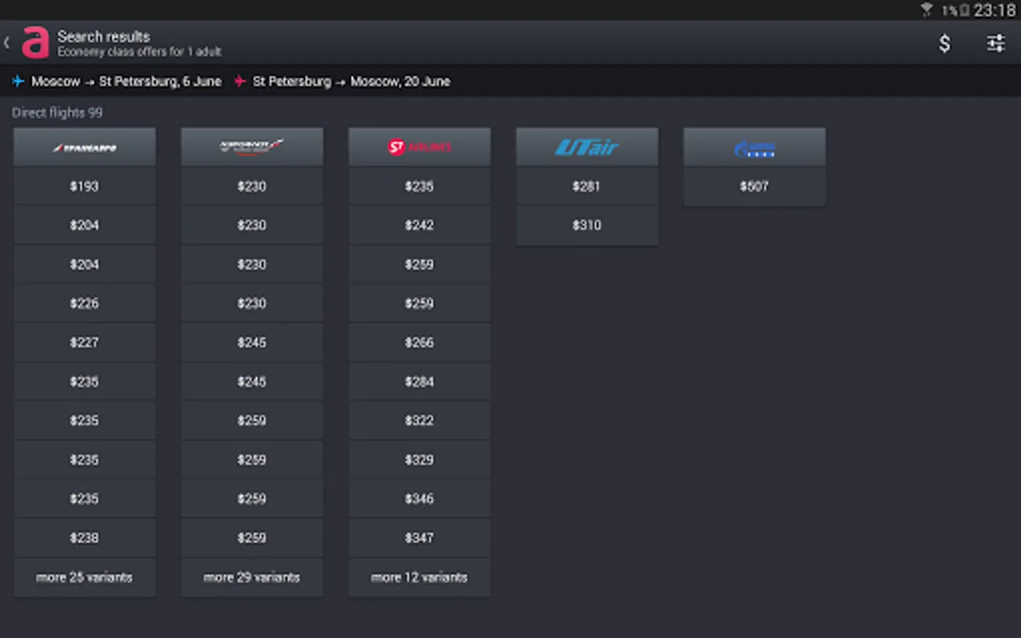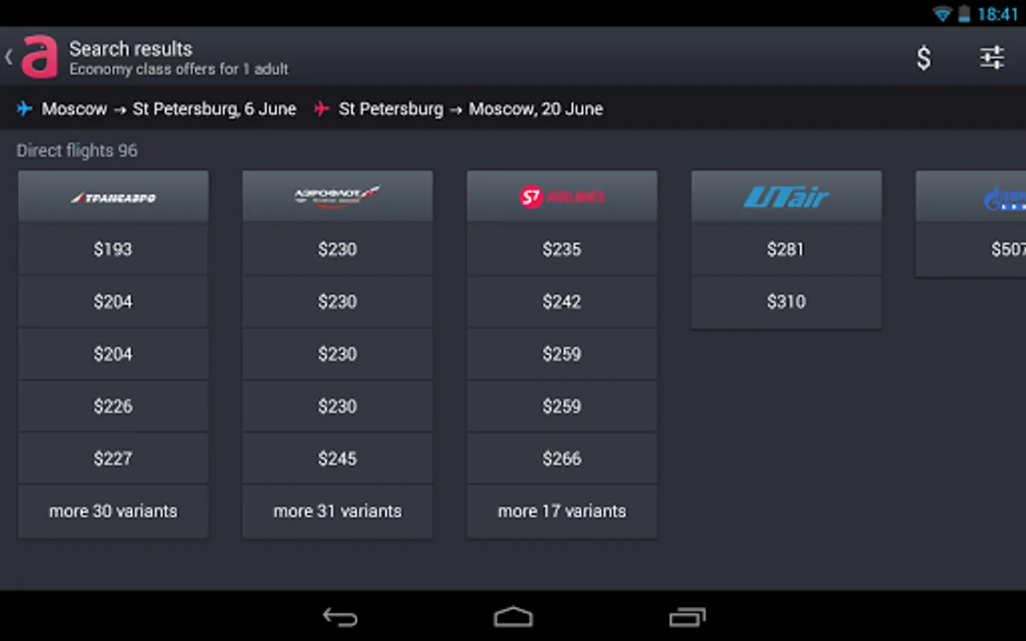 We use all sorts of modern technologies to find whatever you need among 800 airlines such as Aeroflot, S7, British Airways, Air France, Lufthansa, Swiss, and many more, including low-cost carriers, like Ryanair, Eurowings and Pobeda.