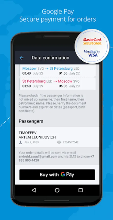 • We take security seriously. Your orders, tickets, bookings, personal data, and payment details are stored and protected.