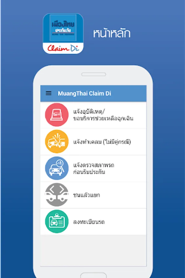 "MuangThai Claim Di" is a mobile application developed by Muang Thai Insurance. After launching a mobile application called "MuangThai I Lert U", it has been determinedly and continuously improving the service capability for the customers.