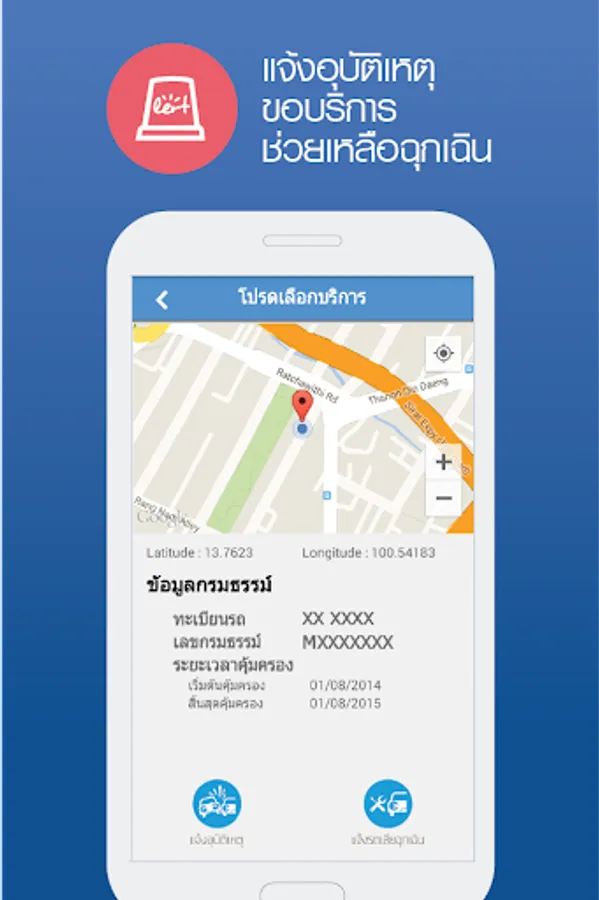 When your car accident Or extra services such as a broken car can not be driven. To use private services Or a home emergency service Just press the Service Call Center to get information policy. And contact information to the address location.