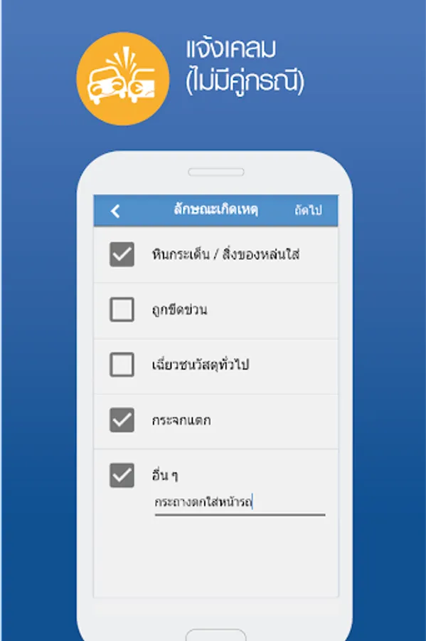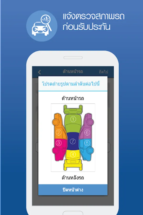 The customers can do condition check-up, take pictures of their cars and submit them to the Company by themselves in order to accompany Motor type 1 insurance proposal Also, all information can also be retained as evidences. Moreover, the customers will receive real-time approval result with policy no. and commencement date of the policy which can be used with other Company's services immediately.