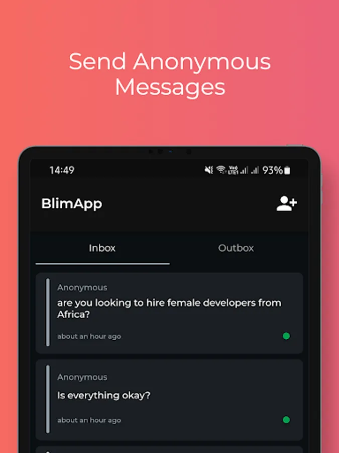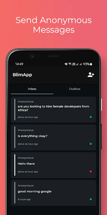 BlimApp is designed to provide users with a platform for open and honest communication without fear of judgment. By enabling anonymous messaging, BlimApp seeks to create a safe and supportive space for individuals to express themselves freely, without the risk of social stigma or backlash.