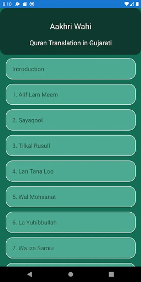 This is translation of Quran in Gujarati language. Which has translation of verse and chapters subject wise.