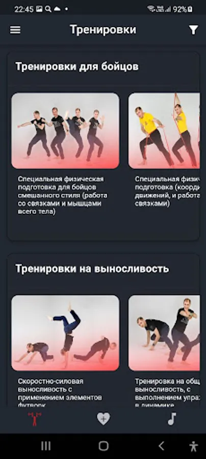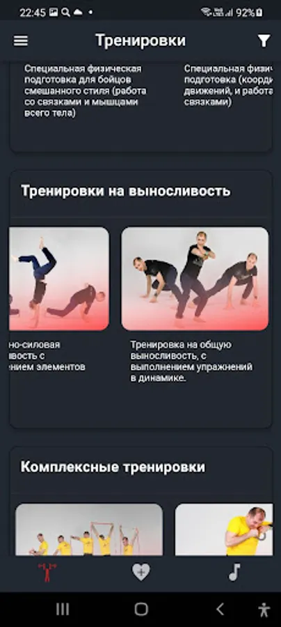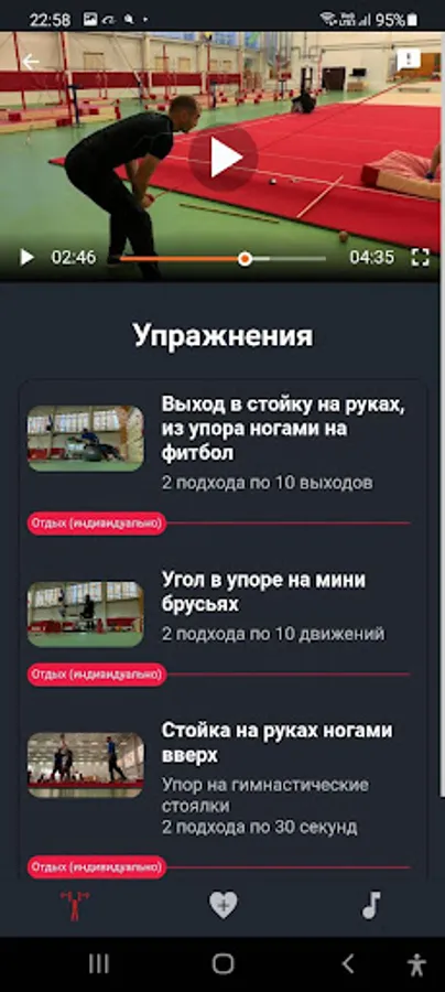 The application contains video lessons on various workouts, in which every athlete will find something for himself.
