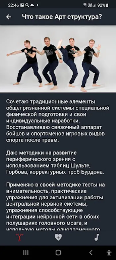 The application contains exercises that include mindfulness tests, practical exercises to activate the central nervous system, exercises that promote the integration of neural networks in both hemispheres of the brain, and methods for performing several tasks simultaneously with a change in environment.