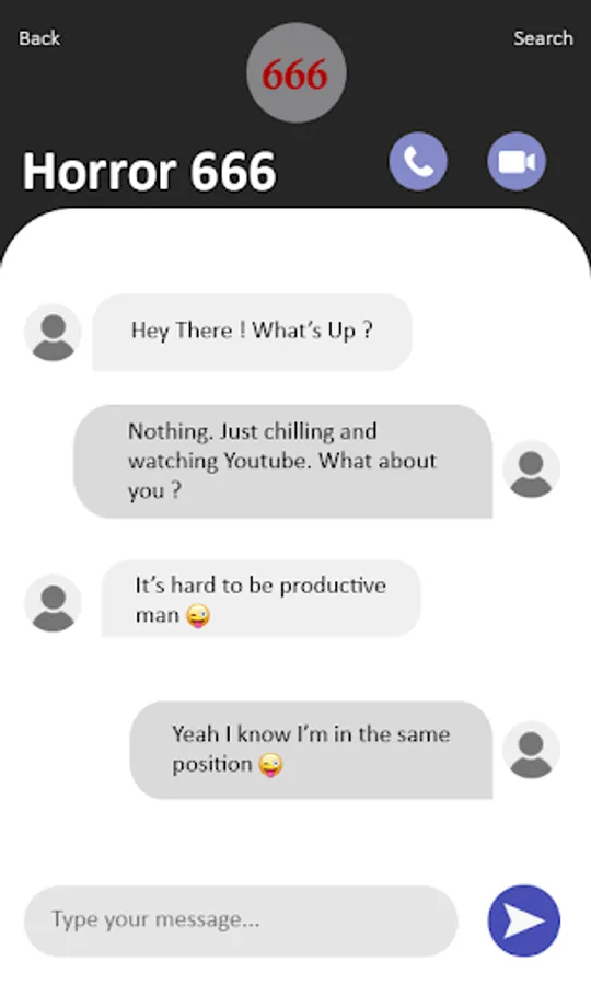 DISCLAIMER: Horror Video Call Game Scary Ghost Call Game 666 evil Horror Call application is intended for entertainment purposes only. This is not an official app and it is 100% fake. Images & Videos in this app are collected from the web.