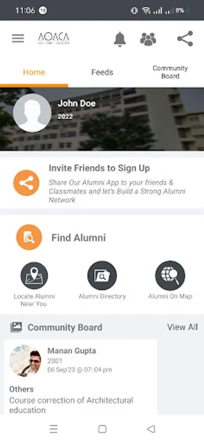 AOA Connect Association is private social community app created exclusively for the alumni members of Academy of Architecture (AOA). With this App the Alumni can find their fellow alumni, share their moments, participate in the college events and keep posted with the live activities of the Association.
