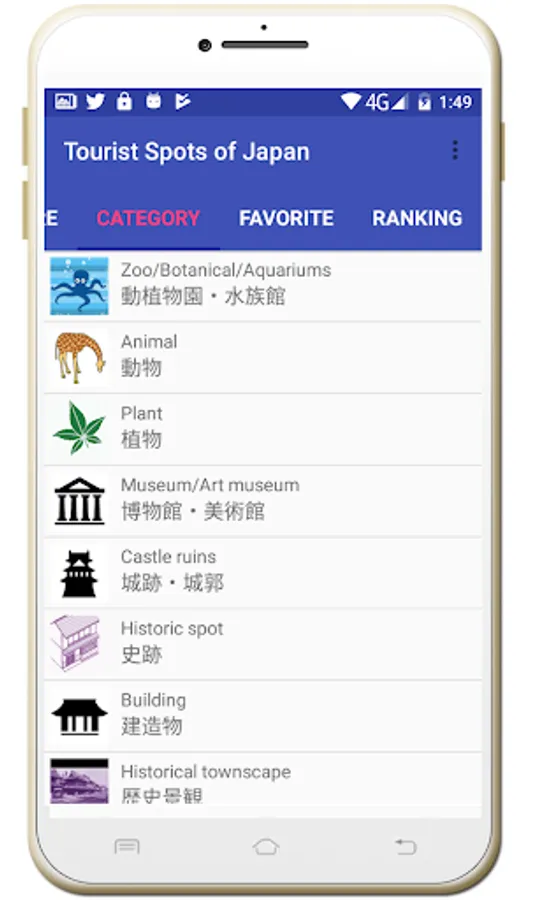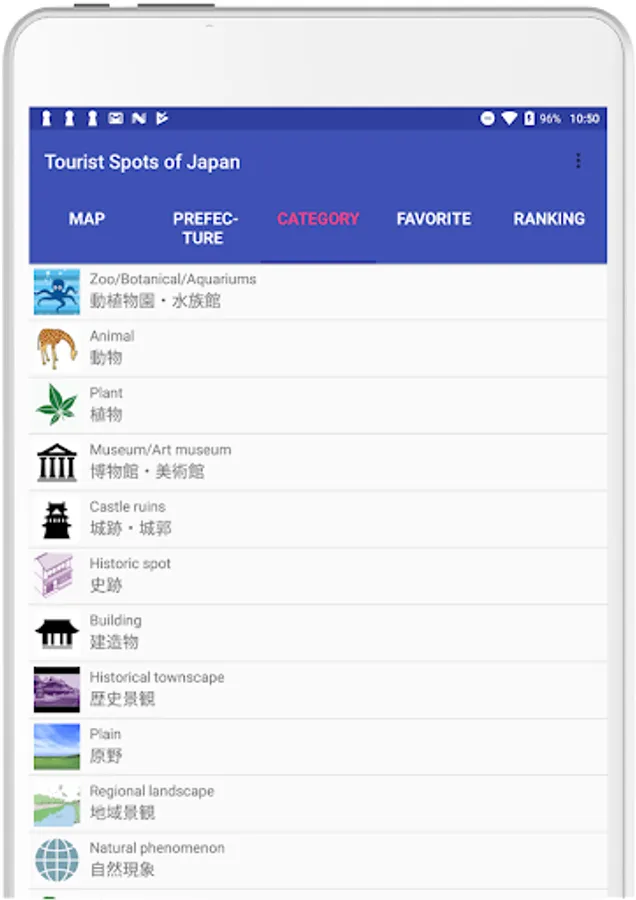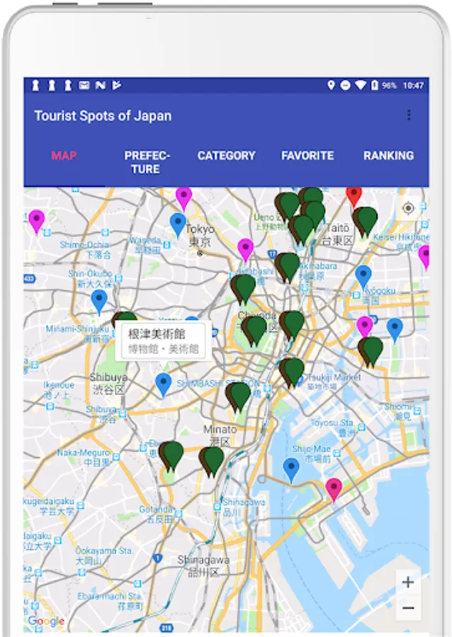 2) The data of 2019 tourist spots which have the highest evaluation in Japan are bundled with this application, you can find them freely without internet environment.