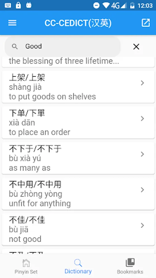 5, You can copy the text to clipboard in the detail screen of dictionary and listen the Chinese voice by a tap or another language by a long press on the voice button.