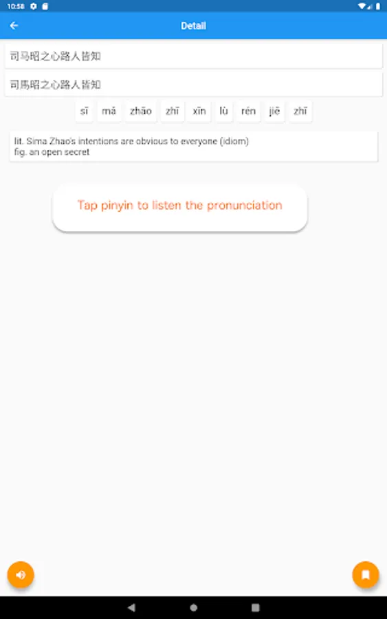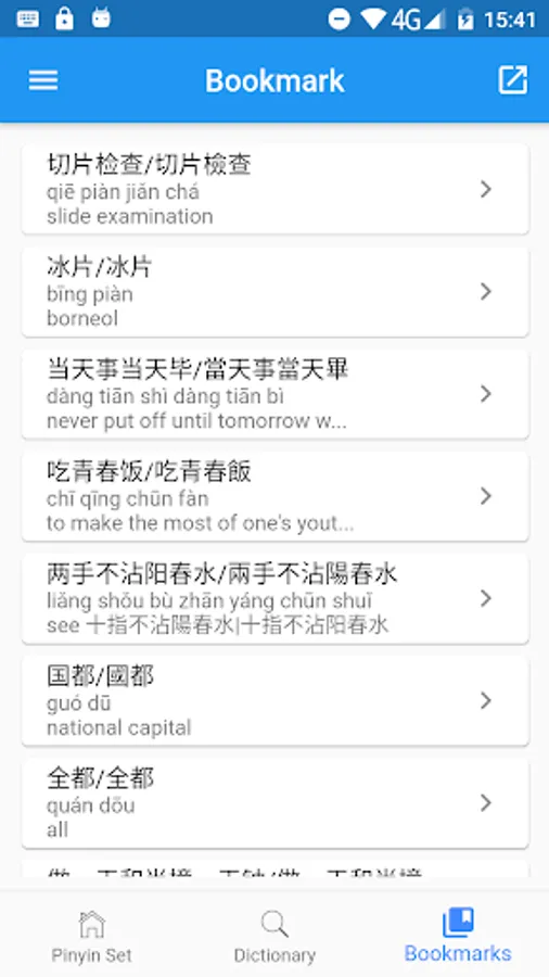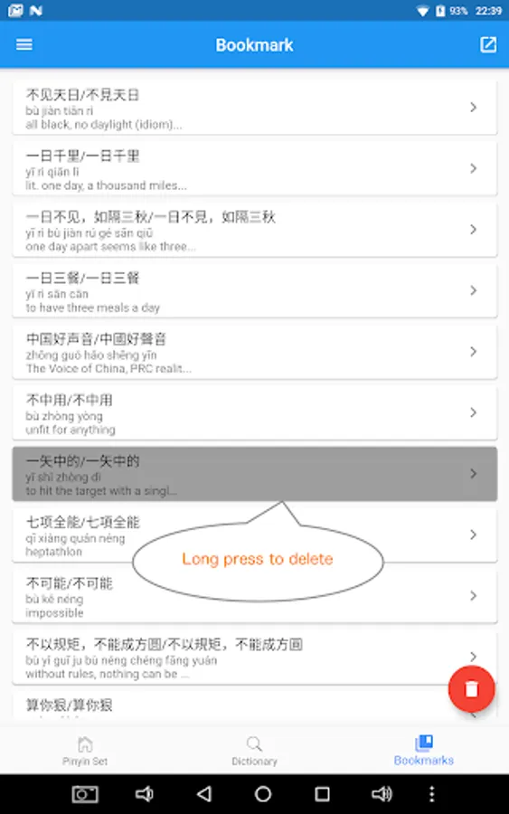 4, You can add your favorite Chinese idioms in the dictionaries to bookmark.