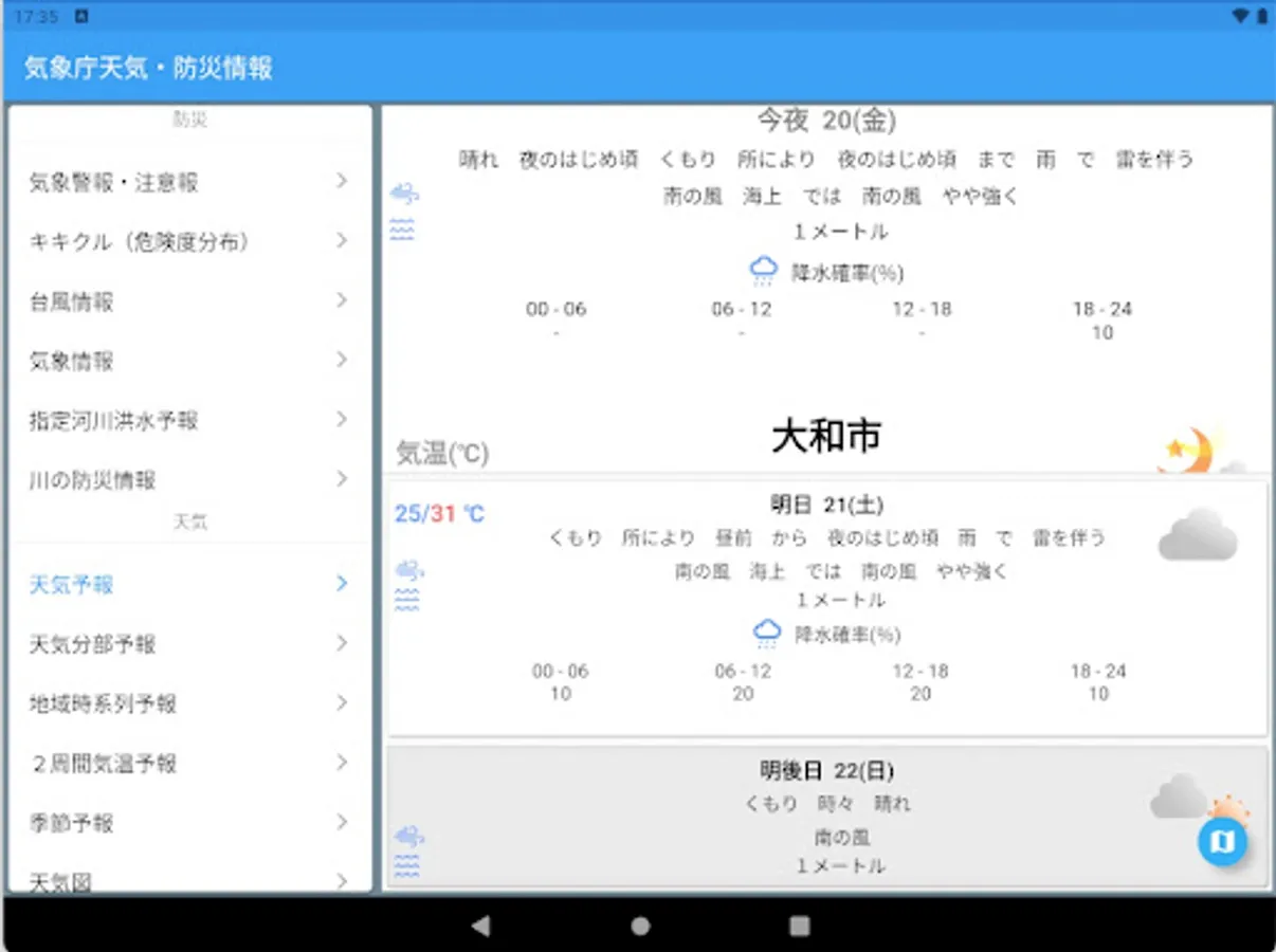 1, Weather forecasting and all kinds of warnings information published by Japan Meteorological Agency.