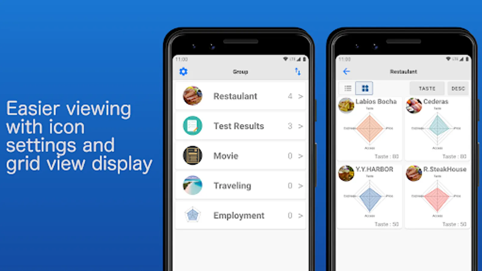Set your own icons for groups and charts.