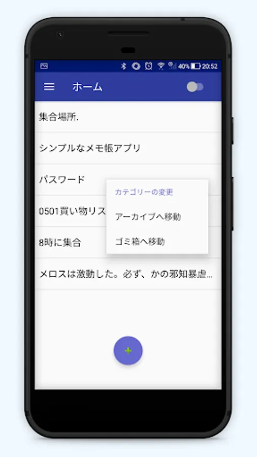 -Manage notes by classifying them into 3 categories (Home, Archive, Trash)