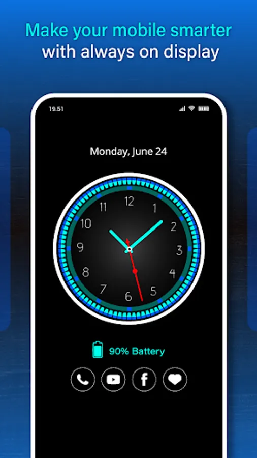 ⌚Always on Display use Amoled always on screen to display watch on black screen that way it will not drain your battery to much. To save battery this real time AOD clock widget will stay your mobile screen black except few pixels to show analog clock or digital clock on phone screen.