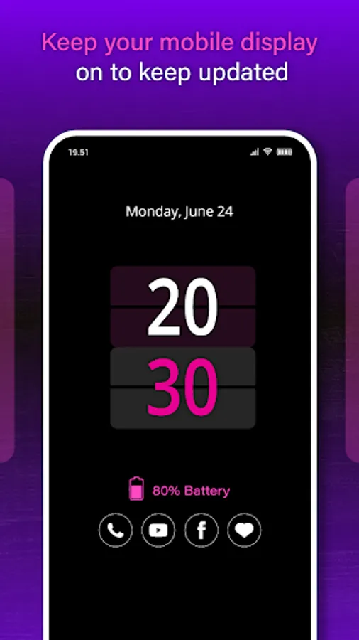 ⌚SUPER AMOLED AOD Always on Display (Display on Screen Clock) is designed for this proposes to show some basic info in black screen whenever you want. All this information will be permanently displayed on your screen. If you want to see what's going on your phone, you can simply take your phone out of your pocket to view all the latest notifications, in a similarly pleasing and minimalist manner by using this New Always on Display clock app.