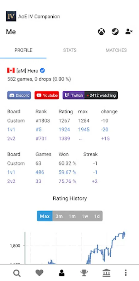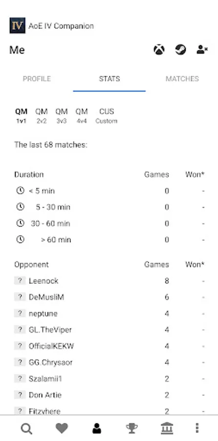 Track your AoE IV games. This app fetches information about your games from aoeiv.net so you are always up-to-date.