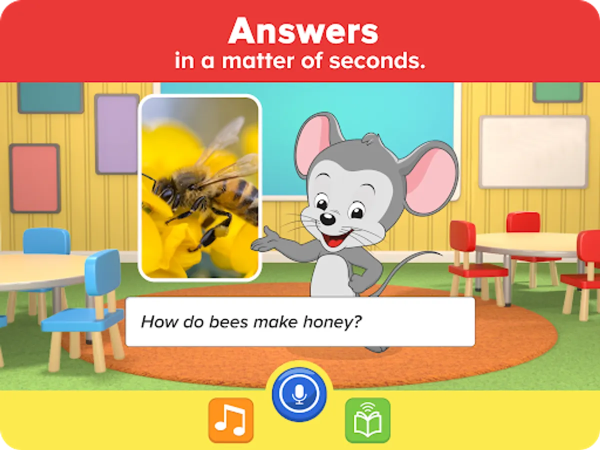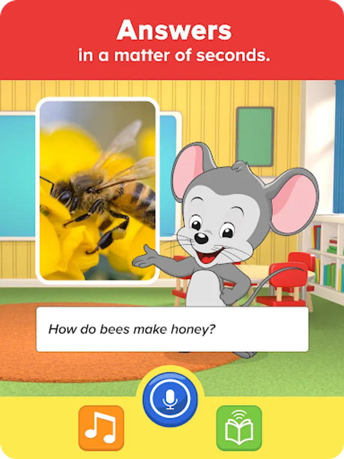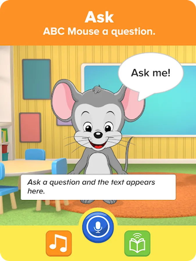 Ask ABC Mouse is not just an app, it's a friendly and knowledgeable companion ready to make learning fun and engaging. Have a question about animals, space, math, or just curious about the world? Just ask ABC Mouse! Always there to guide you, your friend ABC Mouse provides answers that engage the listener and are easy to understand.