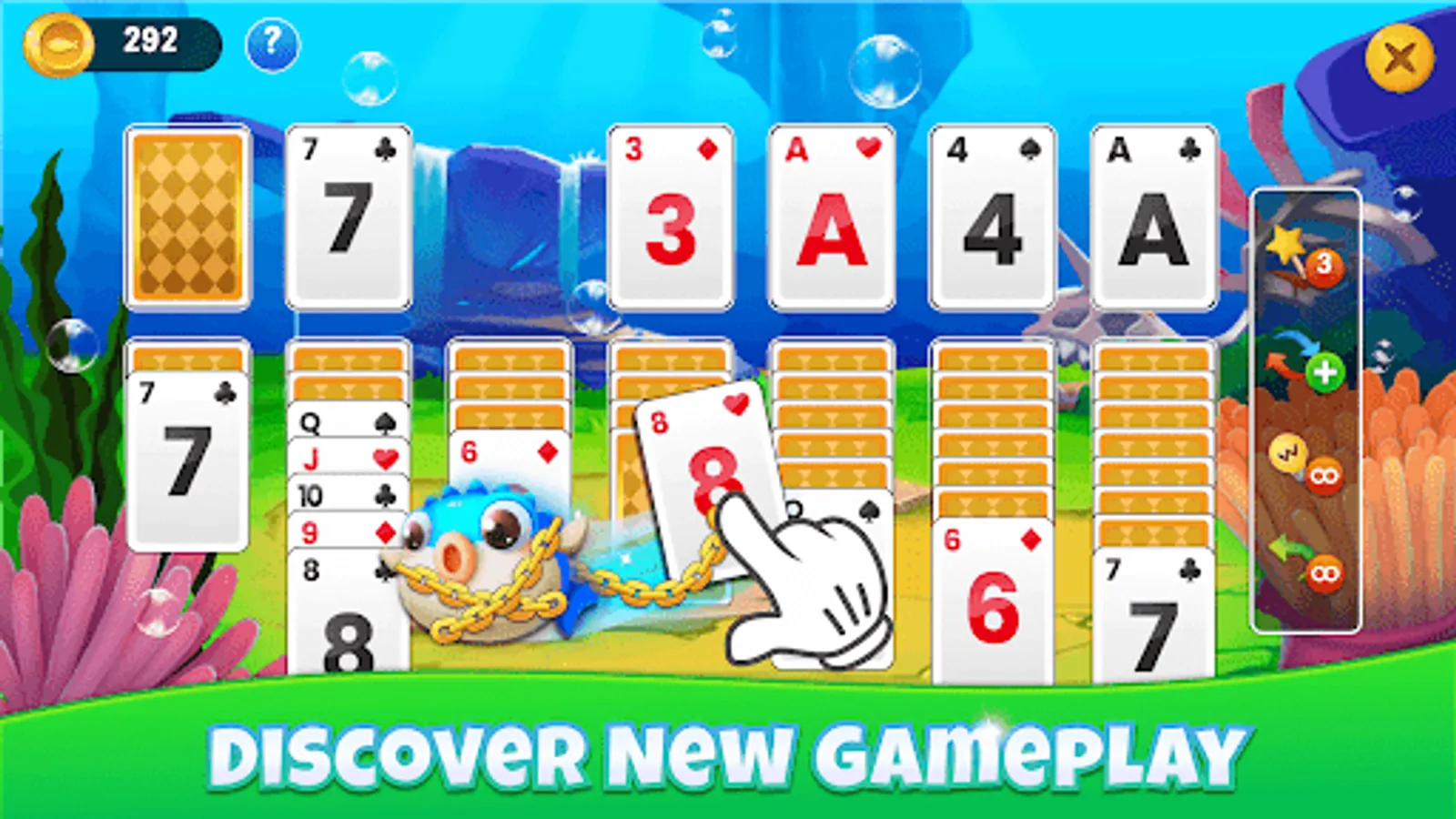 Play a rich variety of solitaire levels to decorate the ocean. It doesn’t matter if you like klondike solitaire or the tripeaks, gameplay will excite you anyway. Don’t worry, if you have never played solitaire before - It's quick and easy to learn.