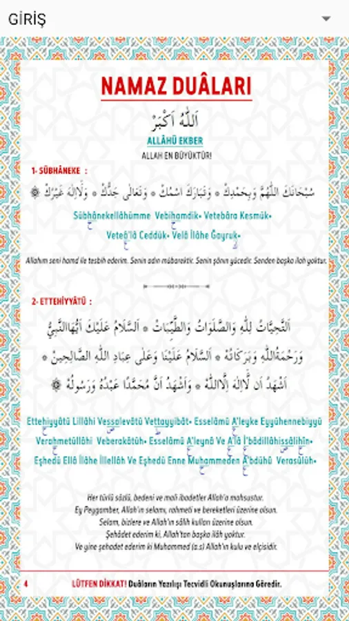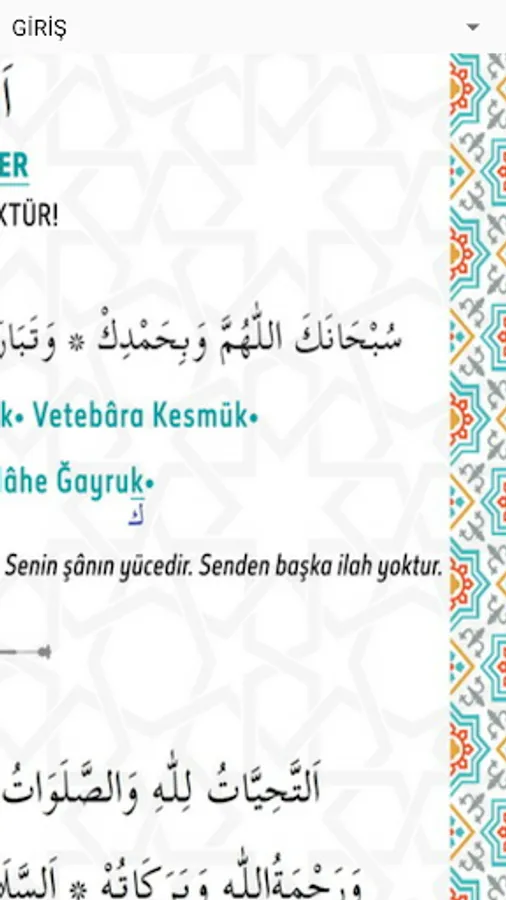 Subhanek to, Ettehiyat of Allahumma Salli, Allahumme Barika, Rabbana, Rabbenağfirl of Kunut prayers