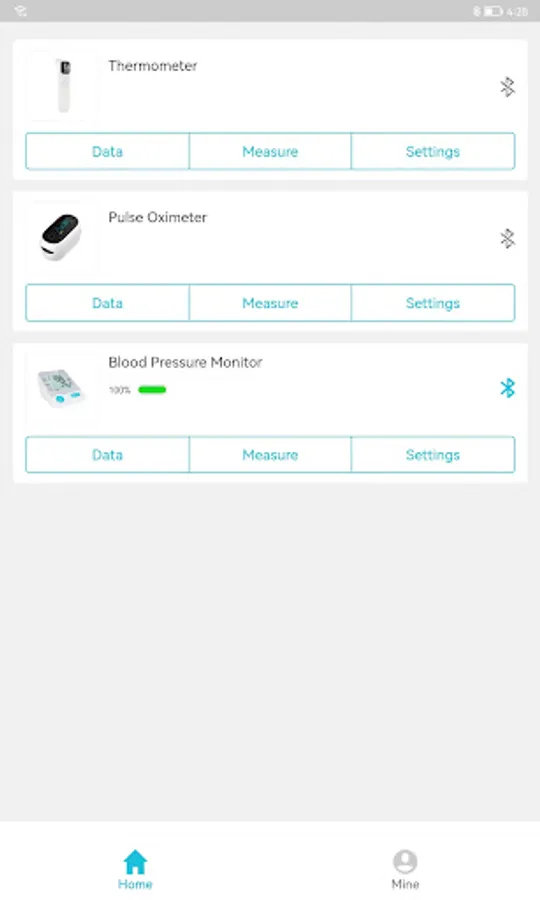 -Connect the health monitor device via Bluetooth, like Blood Pressure Monitor, Oximeter, Thermometer;