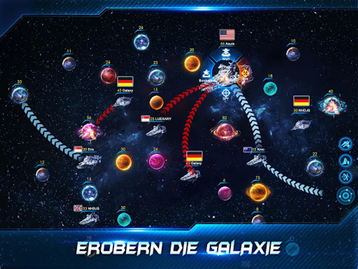 The galactic war breaks out, fight against real countries and kill players around the world! Enter the Hall of Worlds with your allies and fight for the throne of cosmic domination!