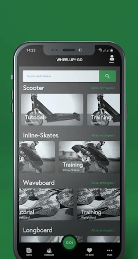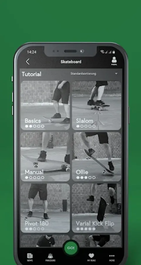 Learn step by step the basic techniques in inline skating, scooters, waveboards, longboards and skateboards and try out new moves and tricks - alone or with friends.