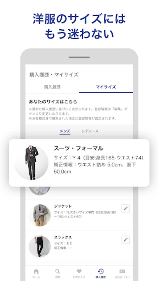 - You can check the size information in advance when purchasing a suit, etc., so you can shop smoothly.