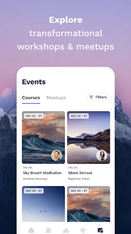 Plug-in to the largest network of Meditation meetups in the country. Select from one of the several hundred locations nationwide and RSVP directly from your mobile device. Find your tribe, meditate in groups with a trained instructor and learn more about SKY breathing technique. For a limited time, instructor led meetups are offered via Zoom.